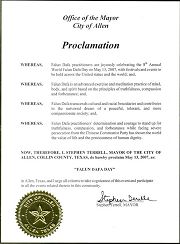 现在,我,Stephen Terrell,美国德州Collin县艾伦市市长,特别宣布二零零七年五月十三日为