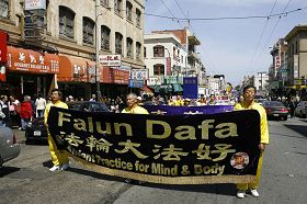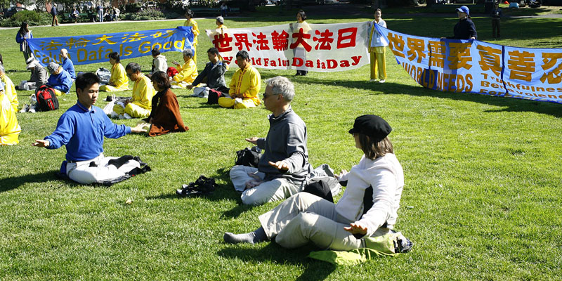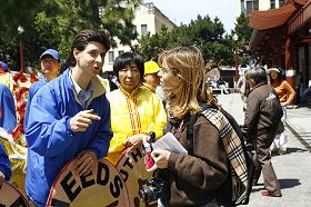 刚刚从广东台山来旧金山的李女士表示,她看了法轮功学员的活动,觉的很祥和,她问在旧金山哪里有炼法轮功的。