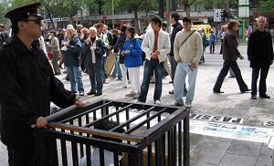 ![]() 真人模拟酷刑展引起行人瞩目 |