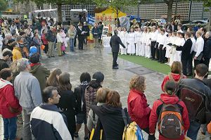 ![]() 一袭白衣的欧洲“为你而来合唱团”拉开集会的序幕 |