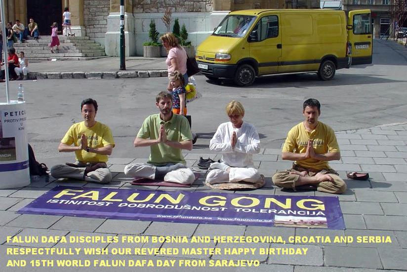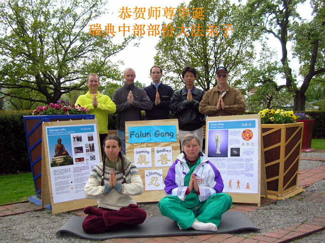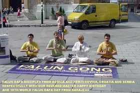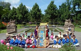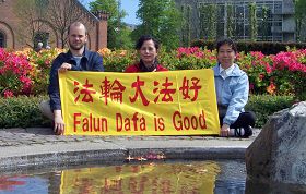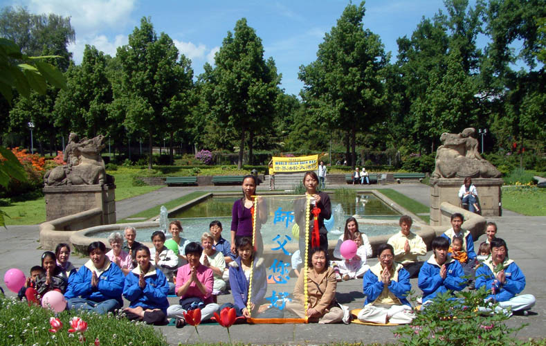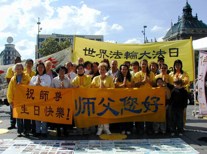 法轮功学员在慕尼黑的卡尔斯广场挂起了“世界法轮大法日”、“普天同庆”等横幅,向市民和游客介绍法轮功,向人们赠送印有“法轮大法好”字样的气球和学员精心制作的小莲花。不少民众被法轮功学员优美的炼功动作所吸引,前来了解什么是法轮功,也有不少人打听炼功点的情况,希望能就近学炼法轮功。
