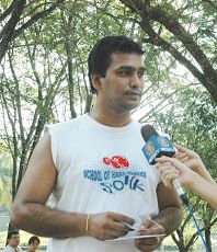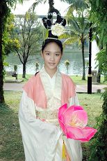 今年十四岁的岱薇(Daiwai)适逢学校假期而抽空从印度回来。她说:“这个功法很好。我们全家都在炼。我去印度读书已两年了。在Hyderabad这个地方,那边的小学校的学生都炼法轮功。”
