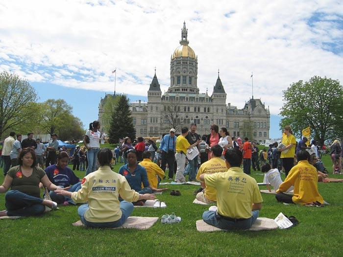 好几千人的到来,原本宽阔的公园显的有些拥挤了。法轮功学员们开始向人们演示功法、并告诉人们法轮功祛病健身的神奇功效。在中国大部份民众没有健康保险,但法轮功一九九二年传出后,修炼者遵循“真善忍”的法理使自己身心升华,获得了真正的健康,也使个人和国家节约了大量的医疗费用。短短的七年内有上亿人修炼法轮功。然而从一九九九年开始,中共残酷迫害法轮功,甚至活摘法轮功学员的器官牟取暴利。美国的健康保险和法律系统应该让要到中国去做器官移植的病人了解真相,以免在不知情的情况下做了中共杀人的帮凶。