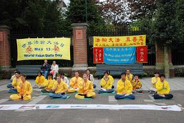 洪法活动包括图片展和功法演示,很多路人都表示对功法感兴趣。“我对法轮功了解不多,但是你们的功法和资料很吸引我,让我继续读下去。”