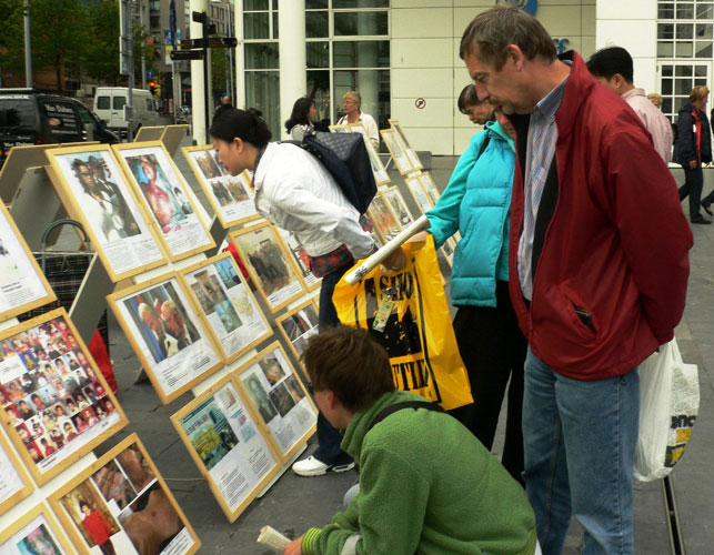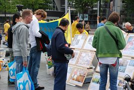 “我一个字都讲不出来,我先看了传单的另一面,很漂亮。这时一个女士告诉我,让我看一下另一面。太可怕了,这样的事(迫害)还存在着,这样的事还发生着。我根本不理解为什么人能做出这样的事来。这样的酷刑,不管是在中国还是在其它地方,都不允许。”