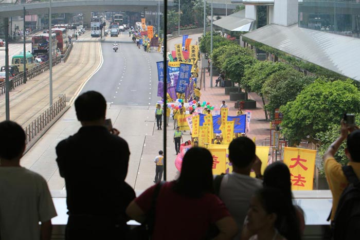 香港民众对庆祝法轮大法日的活动表示欢迎,昨日游行沿途,不少路人都接过了法轮功学员派发的真相材料,许多旁观的民众都对游行队伍报以微笑,更有人追问学员哪里可以学到法轮功。有些市民看到学员的庆祝活动,向身旁的友人侃侃而谈,说法轮大法如何在世界各地洪传。