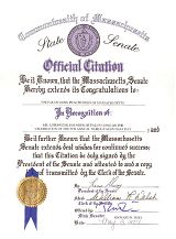 麻州参议院献上最美好的祝愿,祝不断取得成功。此褒奖状由参议院主席签署并由参议院秘书作证明和传递。