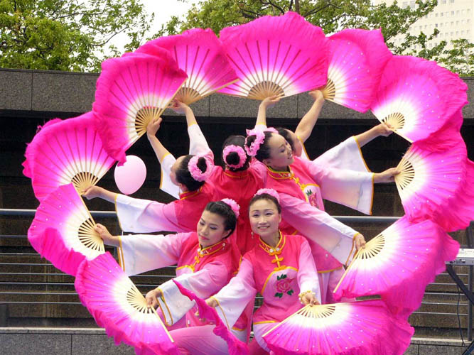 ![]() 富有中国民族韵味的《扇子舞》是最受欢迎的保留作品之一 |