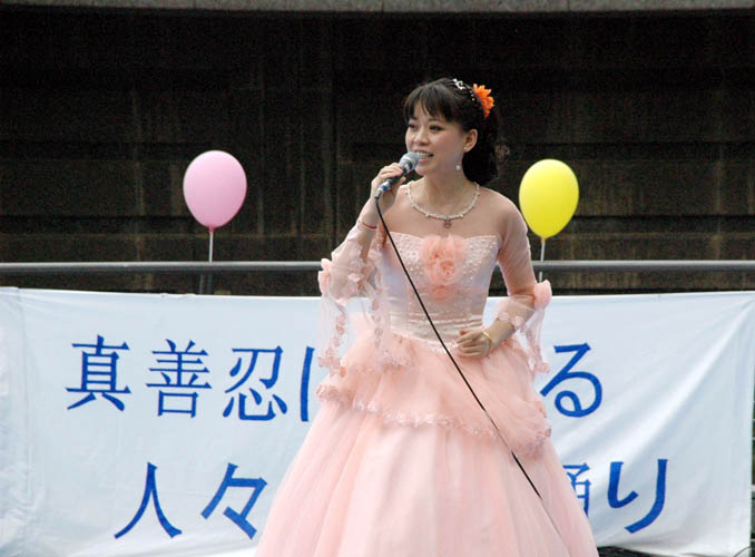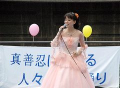 ![]() 大法弟子还演唱了《法轮大法到人间》、《法轮大法好》等歌曲 |