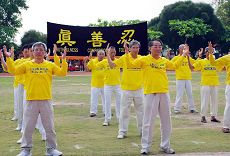 二零零七年五月十二日,母亲节前夕,台湾嘉义县法轮功学员受布袋镇过沟国小及朴子市公所邀请,做了两场功法演示,广受社区及当地民众欢迎。