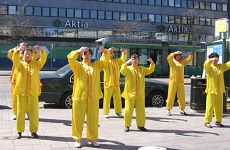 ![]() 五月十三日清晨北欧学员在和煦的阳光下炼功 |