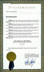 鉴此,我,马克•麦勒瑞(Mark Mallory),辛辛那提市(Cincinnati)市长,特此褒奖二零零七年五月十三日为