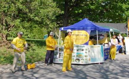 活动中几个西方人来到展位和学员交谈,其中一个人说他去年就是在这里了解到法轮功被迫害的事情,回去后从网上了解到更多的真相,并详细的给他的朋友讲述了法轮功在中国所遭受的迫害。