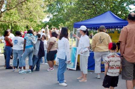 有些来自于大陆的华人带着疑惑来到展位前,他们说:我们一直不明白你们这些免费的资料都是从哪里来的。法轮功学员耐心的解答他们的困惑,并告诉他们全世界的法轮功学员都是这样拿出自己的工资和积蓄印刷资料,目地只有一个:就是让人们了解真相,早日结束迫害。