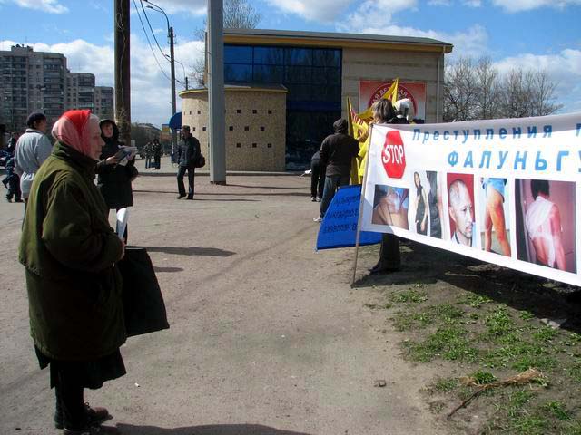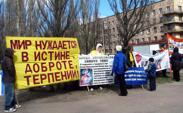 法轮功学员们打着横幅,上面写着“世界需要真善忍”、“立即停止对法轮功学员的迫害”、“中共活摘器官牟利,天理难容”、“中共当局迫害法轮功,践踏人权”等。还有一些学员向市民们发放资料,讲清真相,破除中共散播的谎言对俄罗斯人的毒害。