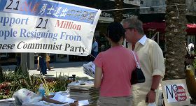 《大纪元时报》代表李女士说,二零零四年十一月海外综合媒体大纪元新闻网发表系列社论——《九评共产党》,它系统的阐述了共产党的邪恶本质,极短时间内在海内外引起了强烈反响,并开始迅速传播,并由此引发了惊天动地、势不可挡的全球退出中共党、团、队——三退大潮。大量中国民众使用各种方式,将退党声明传至海外退党服务中心及大纪元网站,让中共恶党极度恐慌。如今,退党、退团、退队人数已达两千一百万,中共的根已被拔出来了,中共灭亡已是历史的必然,指日可待。在英文大纪元网站谴责中共的留言板上还可以看到海外民众的肺腑之言。英国的约瑟夫写道,“共产主义带给中国人民的只有灾难,世界人民应该联合起来共同努力让所有的共党国家都倒台,使人们看共产党就如同看待纳粹一样的厌恶。”