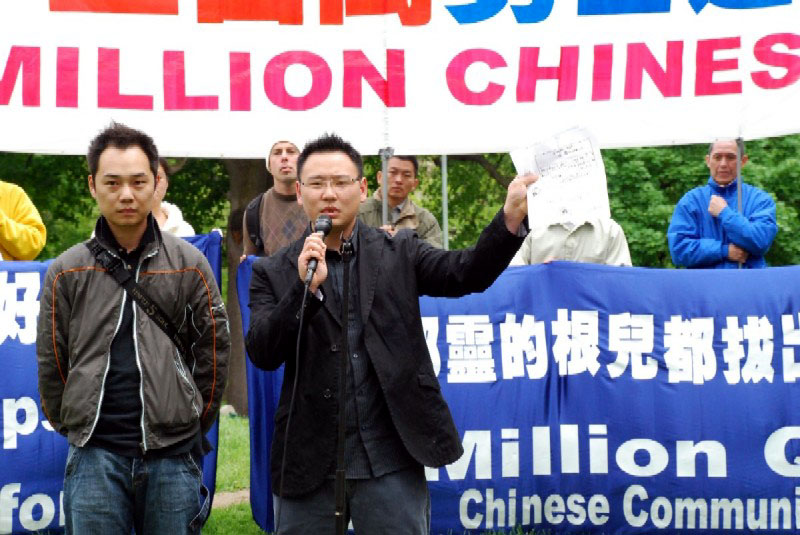 李笑白接着说:“中共对法轮功的迫害采用了残暴的株连政策。我今天站出来是要用真名公开退出共青团和少先队。”