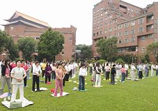 学功法的人络绎不绝,很多人当时就感到全身发热,有很强的能量,很多人炼完后感觉非常舒服。