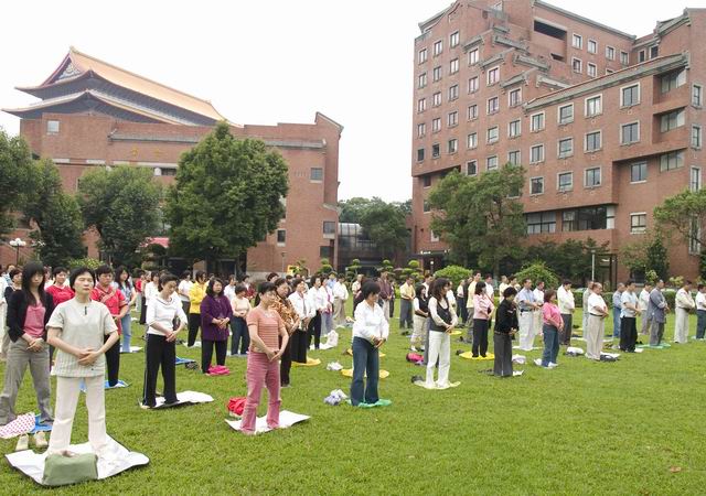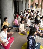 两天中,法轮功学员进行了功法演示、真相图片展示、折莲花等活动。
