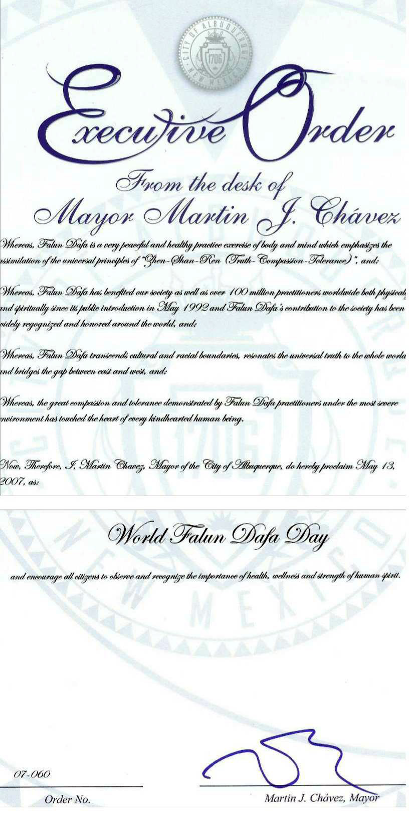 因此,我,阿尔伯魁市市长马丁•谢维兹(Martin J. Chavez),在此宣布二零零七年五月十三日为