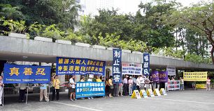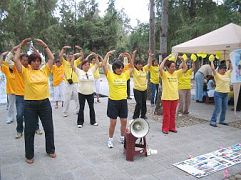 墨西哥城的法轮功学员于五月十三日在查普特佩克公园北部的国立人类学博物馆附近举办讲真相活动。