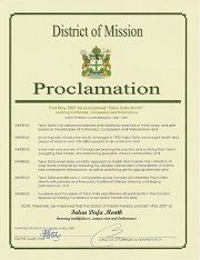 二零零七年五月十四日,加拿大不列颠哥伦比亚省米盛地区市议会宣布二零零七年五月为“法轮大法月”。