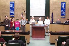 二零零七年五月二十一日,美国密西根州特洛伊市市长邀请该市部份法轮功学员至市议会,在所有的市议员及旁听的市民面前,颁发给法轮功学员的褒奖令。