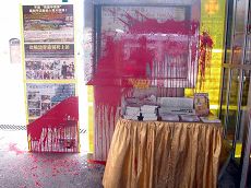 ![]() 香港学员真相点遭凶徒袭击,被泼红油漆 |