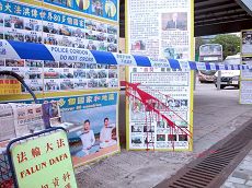 在袭击事件中,播放真相的显示器被砸坏,资料与展板被泼污。但学员强调,他们不会被邪恶的暴力行为吓倒,更加要讲好真相,帮助更多中国人摆脱中共的谎言蒙蔽。