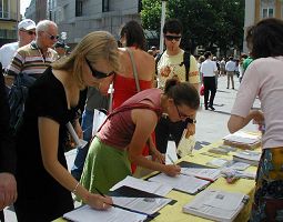 来自波黑、塞尔维亚和克罗地亚的部份法轮功学员于二零零七年五月十二日星期六和十三日星期天在波黑首都萨拉热窝的市中心举办了两次讲真相活动,向人们介绍什么是法轮功,以及发生在中国的迫害。