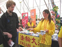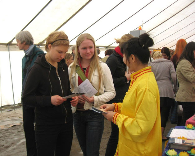一位来自土尔库市(Turku)的大学教师告诉学员,他的很多学生知道中共迫害法轮功,但却不了解法轮功,经常会向他提相关问题,他本人也很有兴趣了解,因此和学员谈了很久,并立即购买了《转法轮》、《法轮功》和教功录像带。