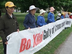 中国商业部长薄熙来周日在抗议声中来到渥太华。当天下午两点半左右,法轮功学员在维斯汀旅馆电梯间,将在安省最高法院起诉薄熙来酷刑迫害罪的诉状递交给薄本人。按照法律规定,薄熙来必须在二十天内应诉,否则