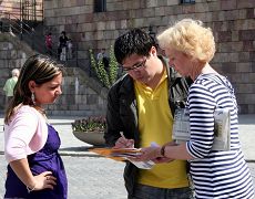 为了更广泛深入的向世人讲清中共迫害法轮功的真相,以及中共活体摘取法轮功学员器官并牟取暴利的恶行,从二零零七年五月二十六日上午开始,居住在瑞典首都斯德哥尔摩的部份法轮功学员走上了街头,开始了向民众面对面的讲真相,征集支持法轮功反迫害的签名。