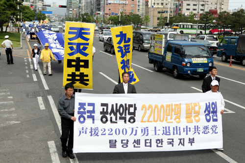 ![]() 韩国退党服务中心首次在韩国南部蔚山市举办声援中国民众三退的集会和游行 |