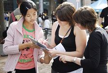 ![]() 人们毫不犹豫的在征签本上签下自己的名字表示对法轮功反迫害的支持 |