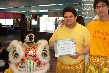 在最后一站表演结束后,安省省议员马里奥.勒口(Mario G. Racco)代表主办机构给法轮功学员颁发了奖牌,感谢法轮功学员对加拿大社区发展所做的贡献。