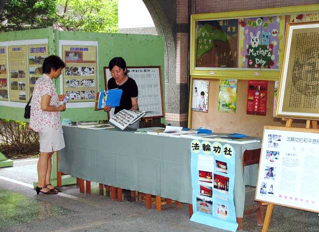 ![]() 宜兰高商法轮功社团在校庆活动中摆设展位,介绍法轮功真相 |