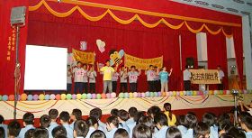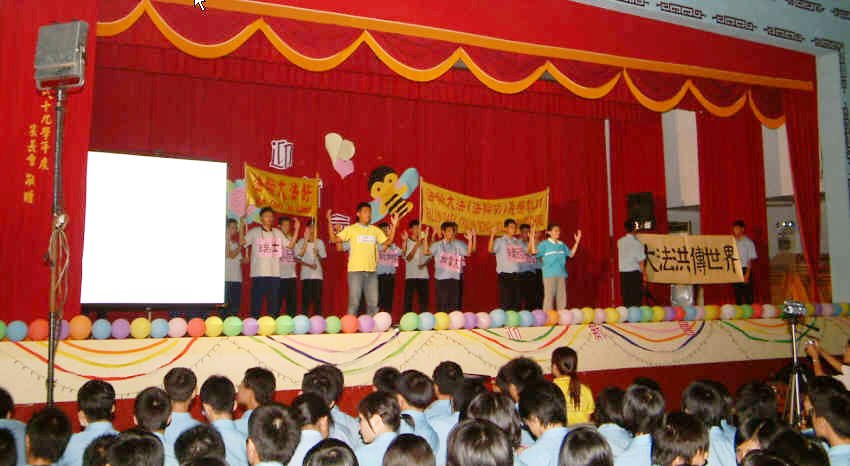 ![]() 二零零六年迎新活动,生动的舞台话剧表演让新生们了解了法轮功真相 |