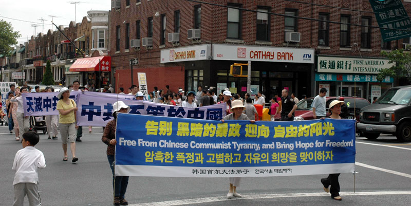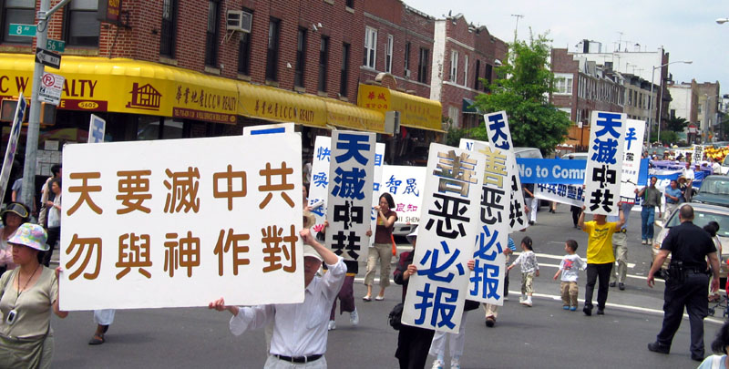 ![]() 二零零七年六月九日,纽约民众于布碌仑集会游行声援大陆二千三百万民众三退。民众打出“善恶必报”、“天要灭中共、勿与神做对”的横幅。 |