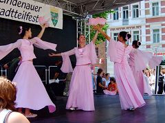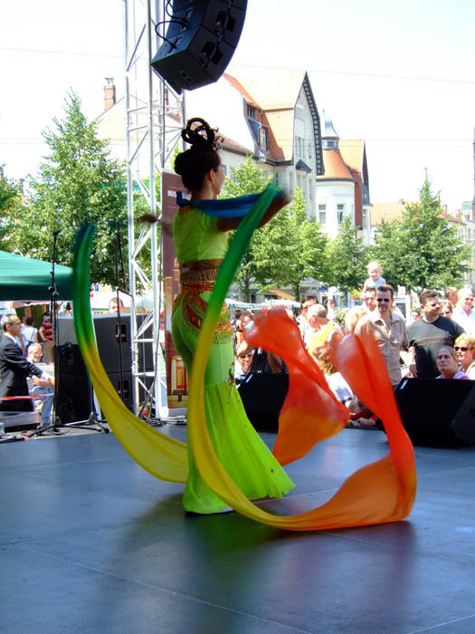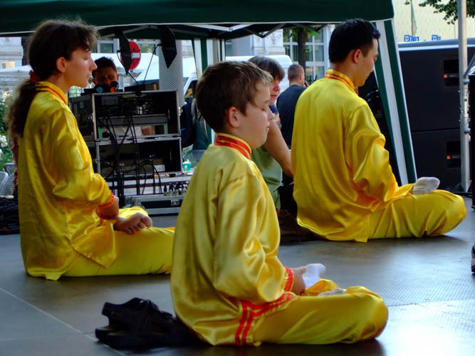 二零零七年的庆祝活动比往年更受瞩目。原因是莱比锡的市长将要到现场发表演讲。法轮功学员不但象以往一样摆放信息台,而且还申请了大型舞台表演和露天的“真善忍美展”,希望市长和民众都能亲眼看到,亲身感受到大法的美好、祥和,让人们感受到这个修炼团体即使已经被中共残酷迫害了八年,并且迫害还在继续,但他们还在给别人带来美好。