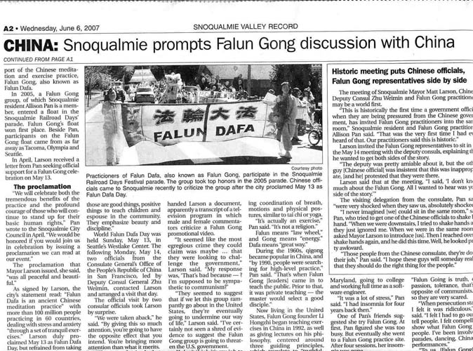 发表于二零零七年六月六日的《斯诺阔米山谷报》(Snoqualmie Valley Record)