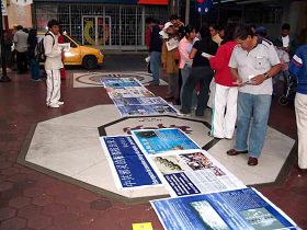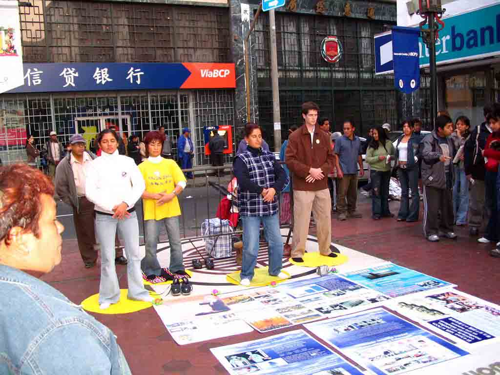 法轮功学员在华人社区设立了两个每周讲真相活动的固定点。秘鲁民众从摆放的中西文揭露中共对法轮功迫害事实的图文中认识了中共的邪恶面目。观看着学员展示平和舒展的五套功法,人们震惊于如此美好的功法在中国受到残酷的迫害。询问详细情况后,人们纷纷签名表示支持法轮功。