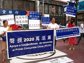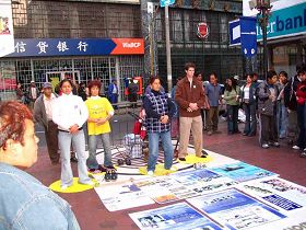 在唐人街,法轮功学员向中国人传达了两千万大陆民众退出中共恶党及其相关组织的重要信息,引起中国人的关注。今年从元月一日开始,法轮功学员在唐人街坚持不懈的讲真相、送九评。中国人开始驻足观看图片中的中文说明,并主动索取真相资料。每次活动,法轮功学员平和友善的举动和真实的图片,给人们留下深刻的印象,同时也感动了中国人。