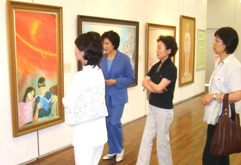 美展期间艺术馆二楼召开了罗马尼亚音乐团的演奏会和三育大学教授作曲发表会。参加这次演奏的大多数团员观赏了“真善忍”国际美术展。通过画展和解说,他们了解到法轮功是什么,中共怎样残酷的迫害法轮功,以及法轮功修炼者面对迫害体现出坚韧不屈的精神面貌。特别是罗马尼亚来的团员们表现出对法轮功人权遭践踏的关注,以及对中共邪恶本质的新认识。他们在两天时间里每天都来观赏作品。