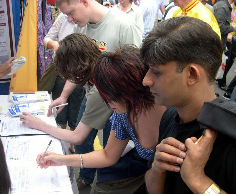 ![]() 人们纷纷签名谴责中共对法轮功的迫害 |