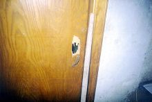 ![]() 张秀英家门被砸开 | ![]() 门锁被撬掉 |