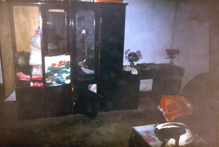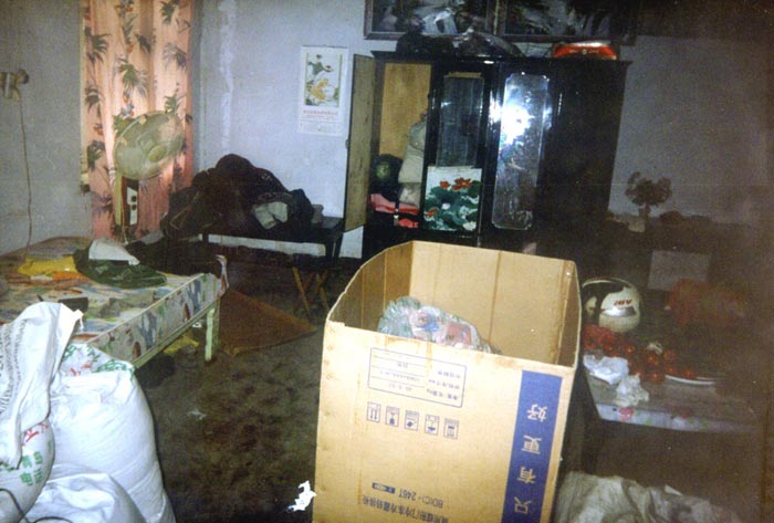 张秀英被绑架走了后,董全启又带领三名恶警返回张秀英家进行非法抄家,像土匪一般将家中翻的一片狼藉,他们将锅搬开、将灶台后面墙上的瓷砖打碎、将家里的衣柜柜门砸下、南屋门上的玻璃打碎……,最后抢走了两台机器和一些法轮功书籍,还有一些真相资料。