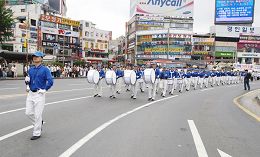 退党游行路线正是水原市的交通要道,天国乐团、韩国传统四物舞、腰鼓队、九评横幅、揭露中共活摘器官模拟演示等方阵组成的退党游行引起了当地市民的极大关注。游行参加者们说,天灭中共在即,希望中国民众能够及早退出当年被逼或被蒙蔽而加入的中共组织,从而在中共灭亡之时保住自身平安。