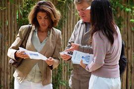 一对法国夫妇聚精会神的在聆听法轮功学员的介绍功法