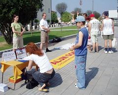 二零零七年五月二十六日星期六,法轮功学员来到斯洛伐克西部的巴诺凡斯奈德贝布拉伐市,让更多的市民了解发生在中国的中共对法轮功学员的残酷迫害。